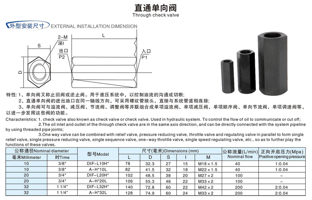 直通单向阀