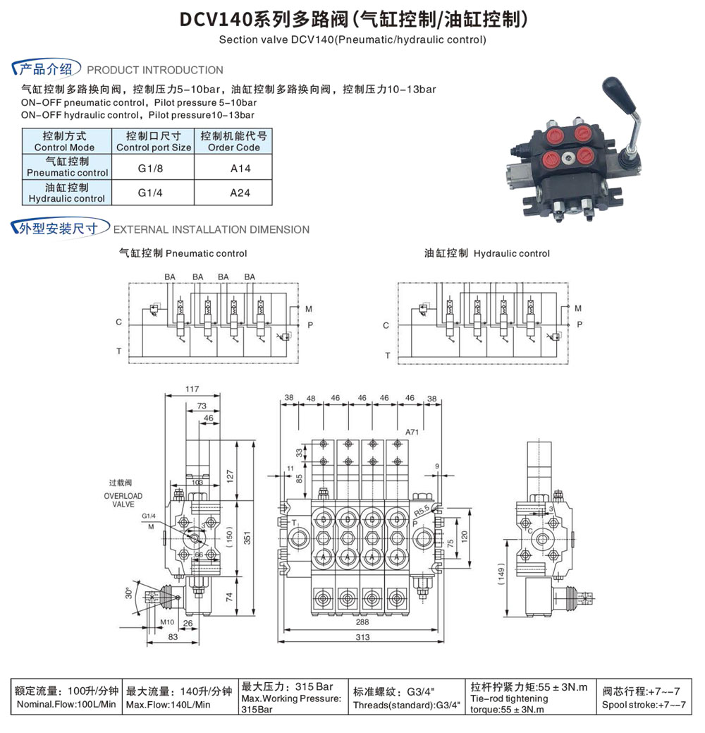 DCV140系列多路阀(气缸控制/油缸控制)